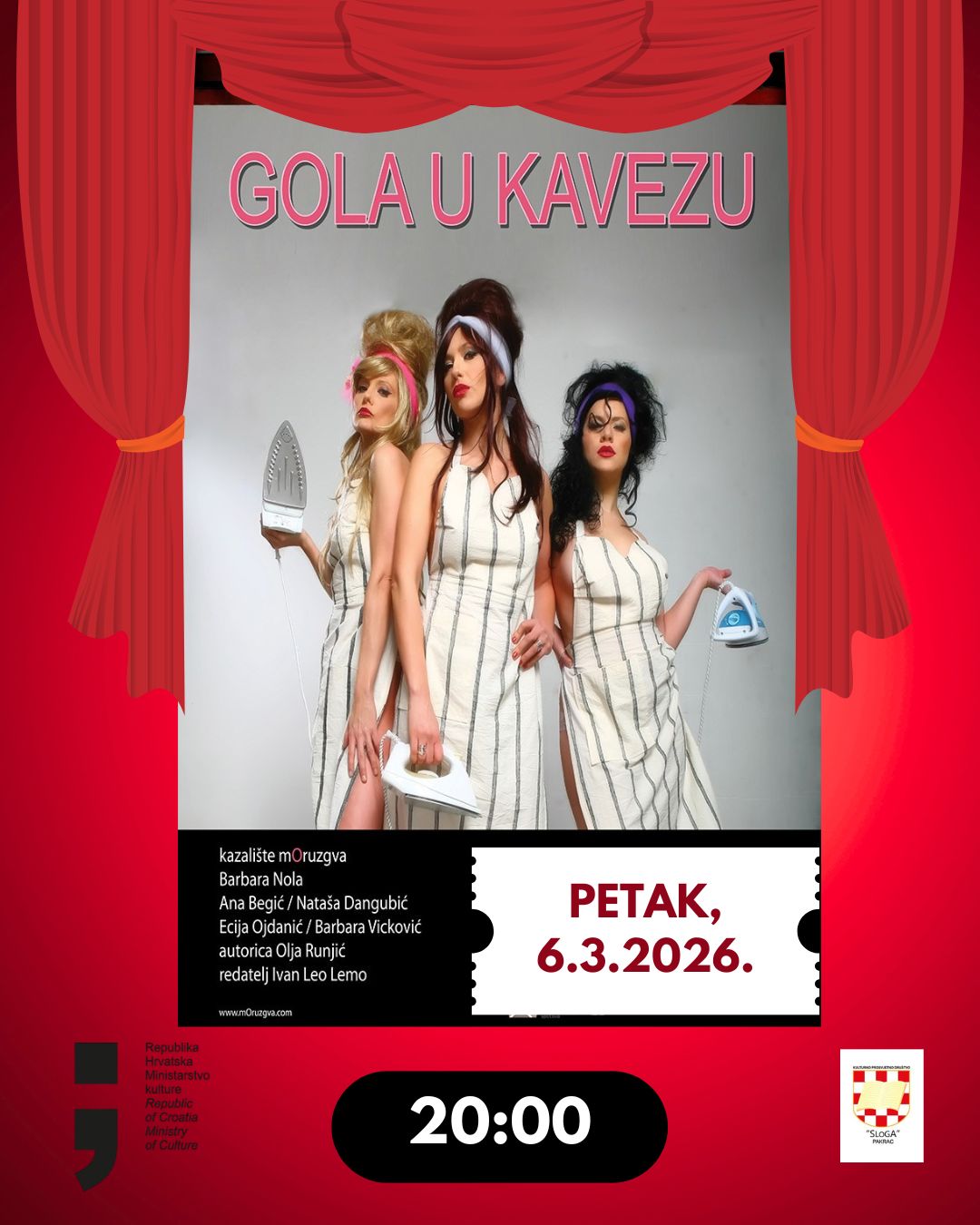 U petak, 6.3., u 20 sati u goste nam stiže @kazaliste.moruzgva s predstavom “Gola u kavezu”.